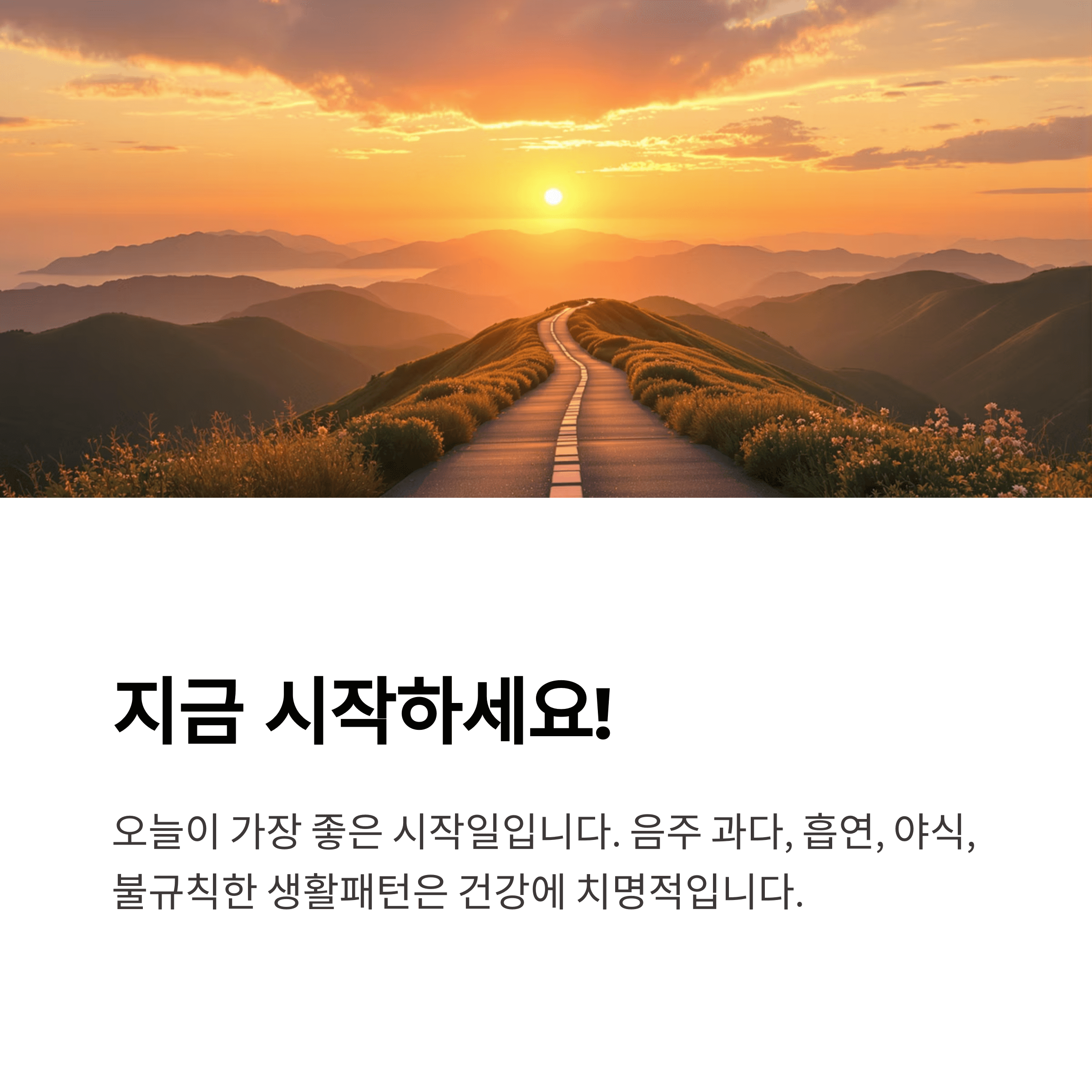 A. 오늘이 가장 좋은 시작일입니다. 걷기부터 시작해 점차 활동량을 늘려가면 됩니다. - Q. 중년기에 꼭 피해야 할 습관은?
