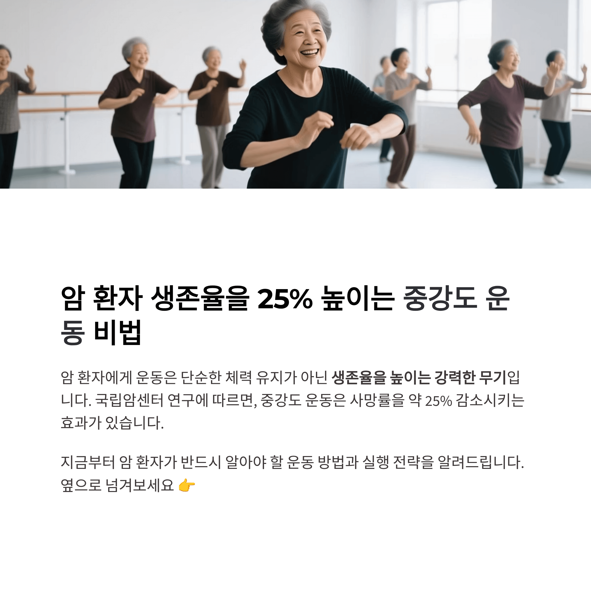 • 이 글에서는 암 환자가 반드시 알아야 할 운동 방법과 실행 전략, 성공 사례를 정리했습니다.