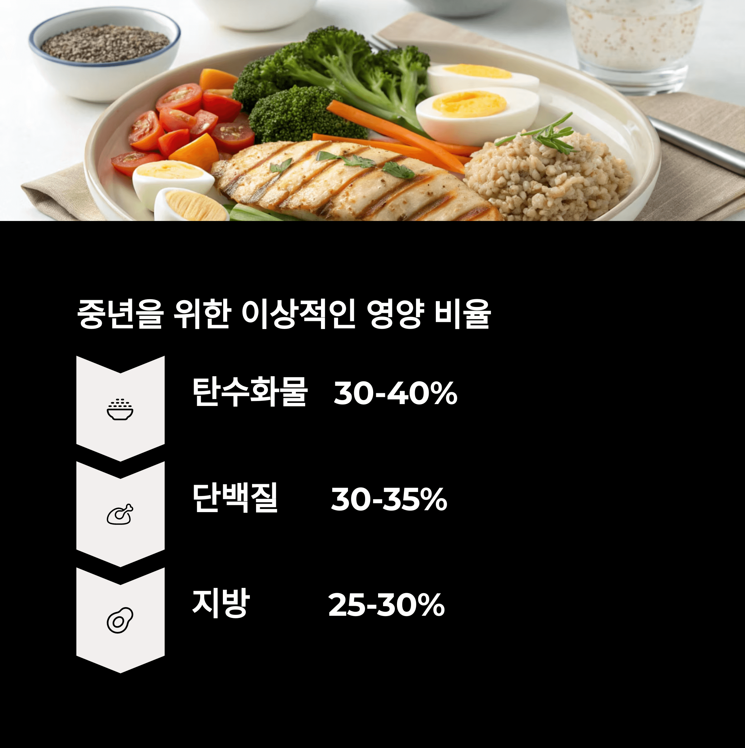 중년의 식사는 체중보다 체질을 바꾸는 과정입니다. 오늘의 식탁에서 미래의 건강을 준비하세요.