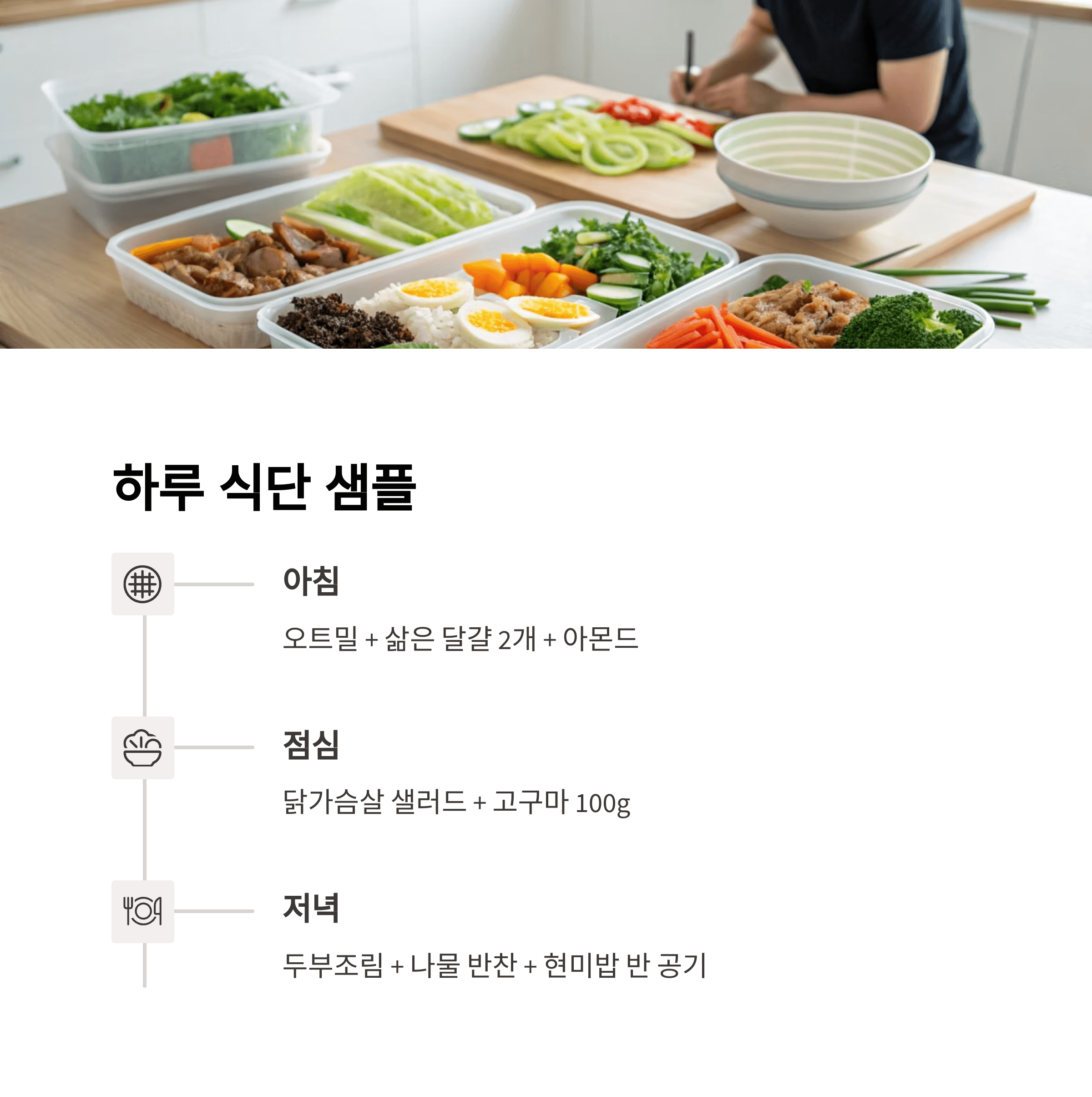 - 단백질 섭취 강화: 근육 유지 및 포만감 증가 목적