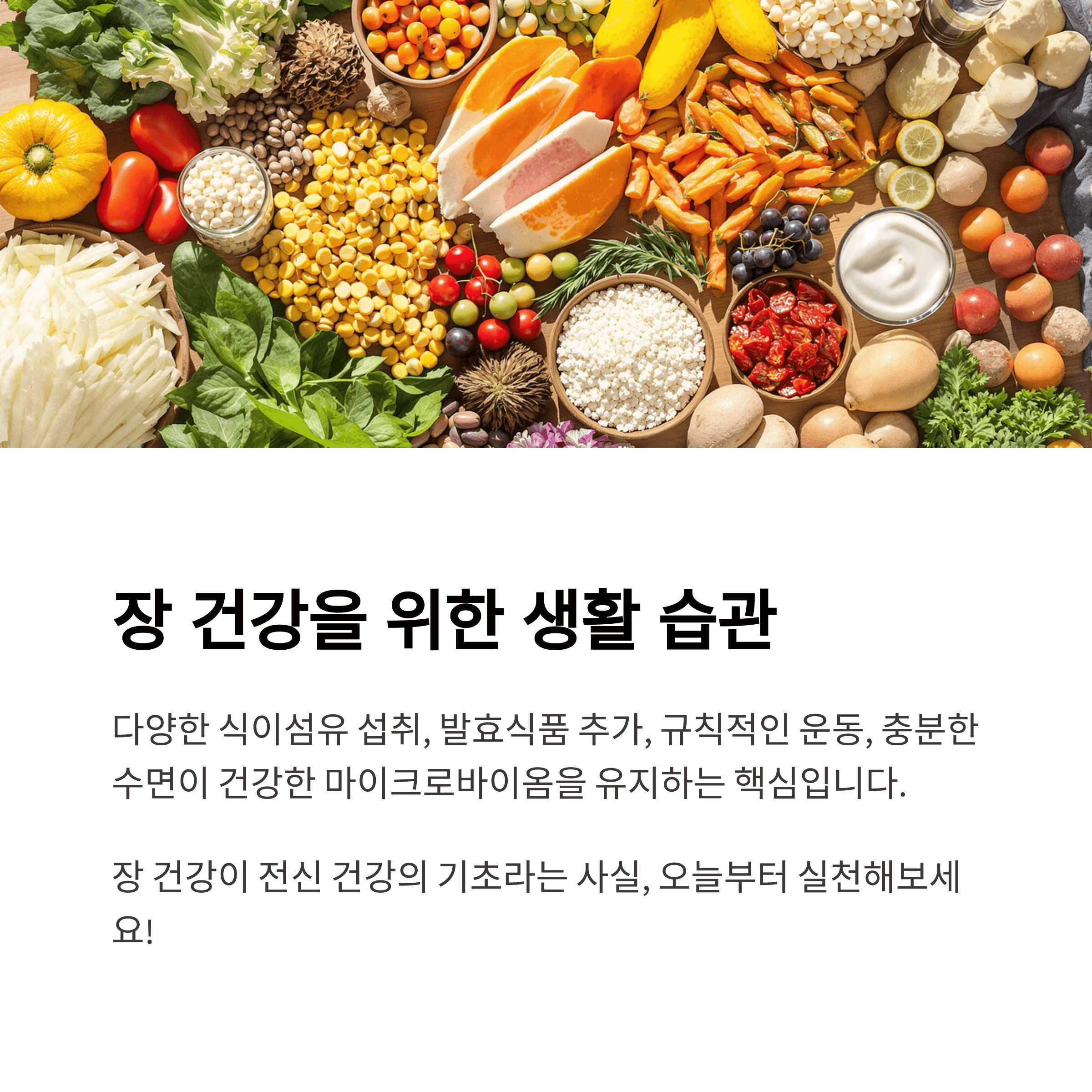 건강한 장을 위해서는 좋은 식습관과 꾸준한 관리가 필요합니다. 아래 표는 마이크로바이옴을 지키는 데 도움이 되는 식단과 습관을 정리한 것입니다.